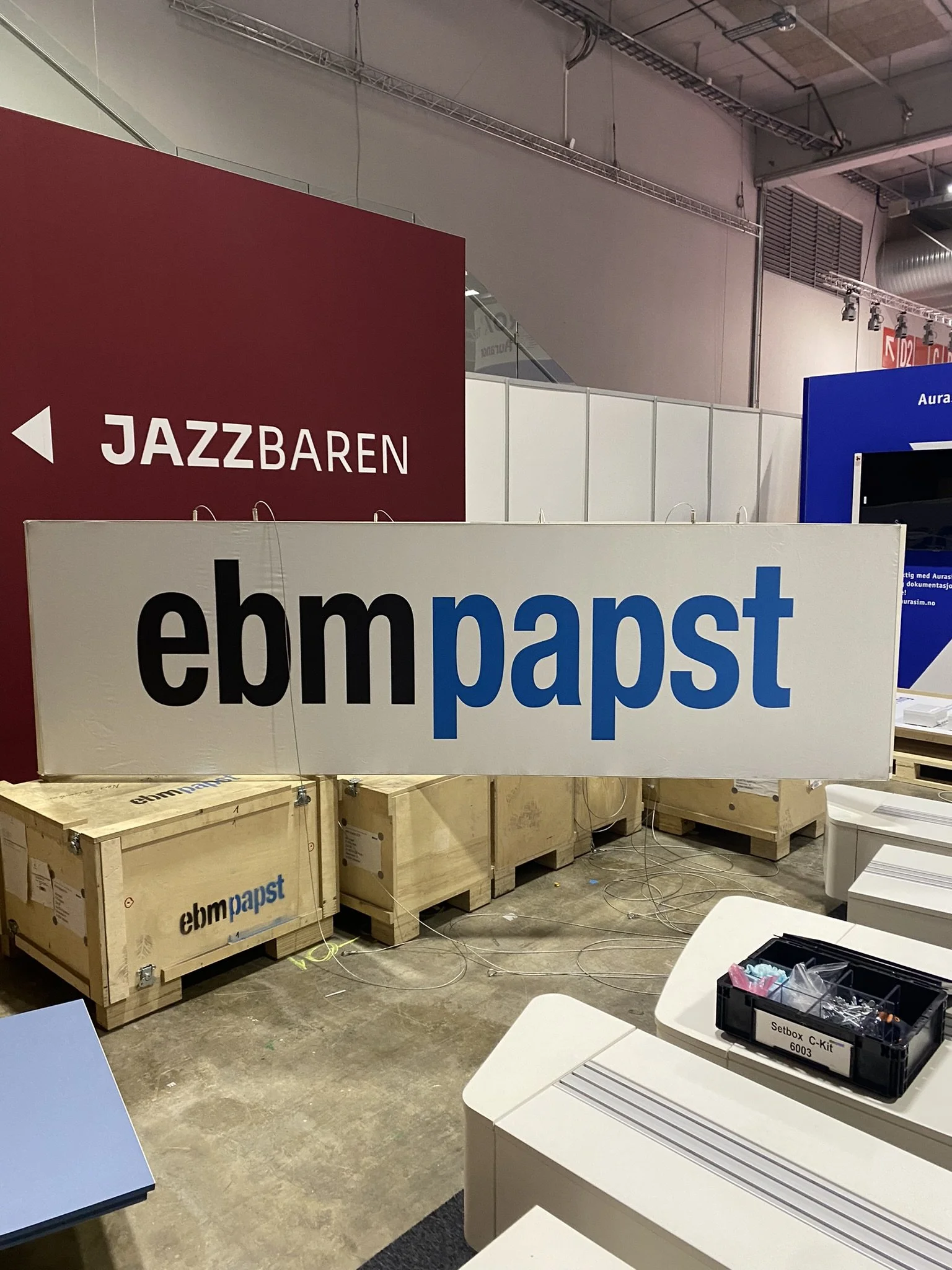 Vi startet riggingen av standen på mandag. Ståle og Isak hadde ansvaret for dette, men heldigvis tredde Gorm ut av pensjonstilværelsen for å gi en hjelpende hånd.
